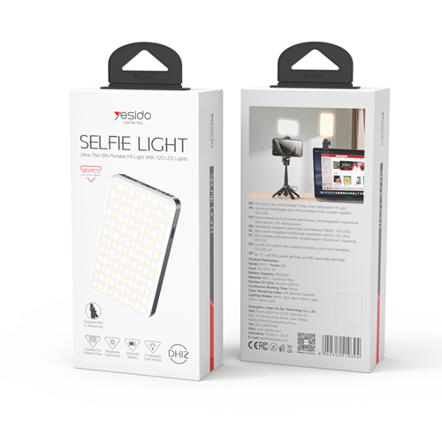چراغ سلفی جیبی Yesido DH12 یک رینگلایت سبک و قابل حمل است که مجهز به ۱۲۰ عدد LED با قدرت ۶ وات و باتری داخلی ۳۰۰۰ میلیآمپرساعتی میباشد. این نور قابل شارژ از طریق درگاه USB و دارای کلیپ است که به راحتی به موبایل، لپتاپ یا سهپایه متصل میشود. DH12 با تنظیم نور دوتایی (Bi-Color) و چندین حالت روشنایی برای گرفتن عکس، ویدیو یا لایو گزینهای ایدهآل برای تولید محتوا در هر مکانی است.